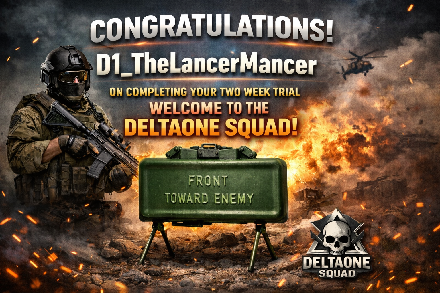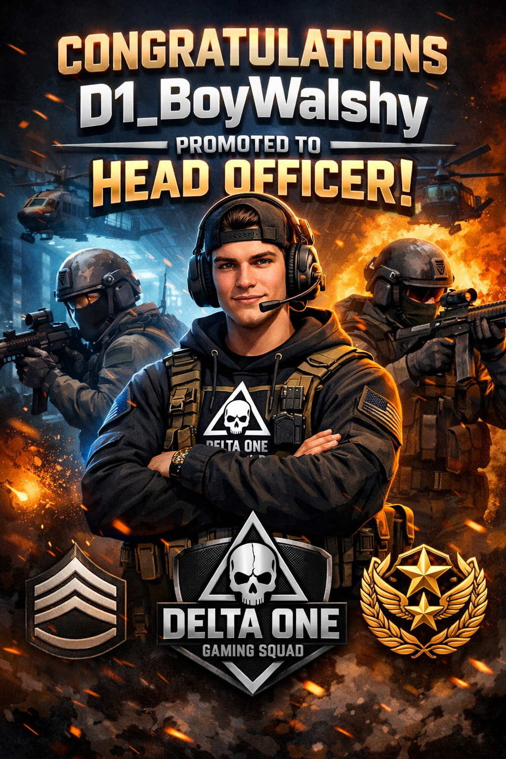 Please congratulate D1_BoyWalshy who has been promoted to Head Officer. Walshy does a lot to help out promoting the squad, welcoming new members and making sure they feel at home. Well deserved, keep up the good work.