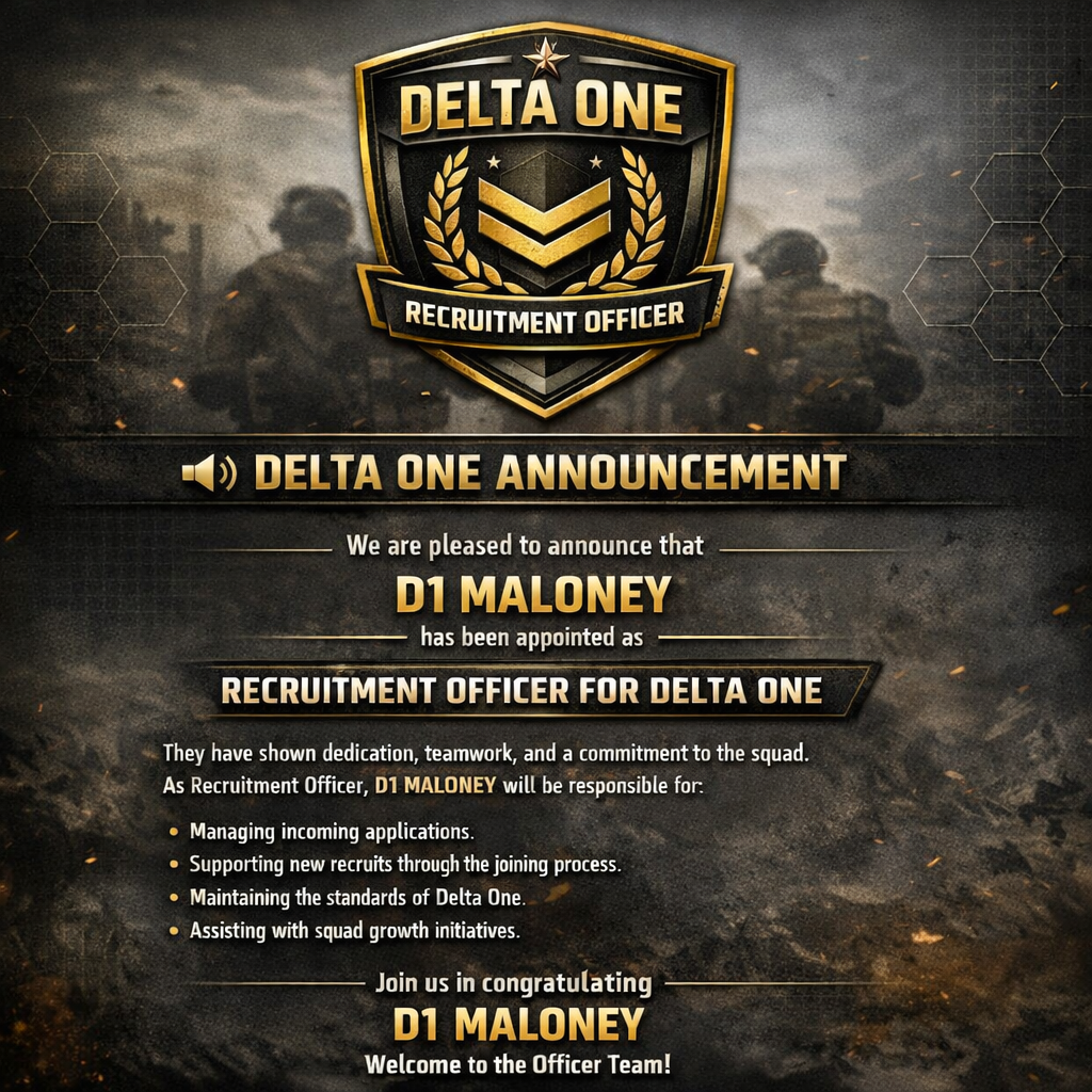 Congratulations to BoyWalshy who has been promoted to Officer. In the short time he has been with us, his drive to promote the squad and his efforts in recruitment have helped grow the squad. He also shares the same vision as the rest of the leadership team.